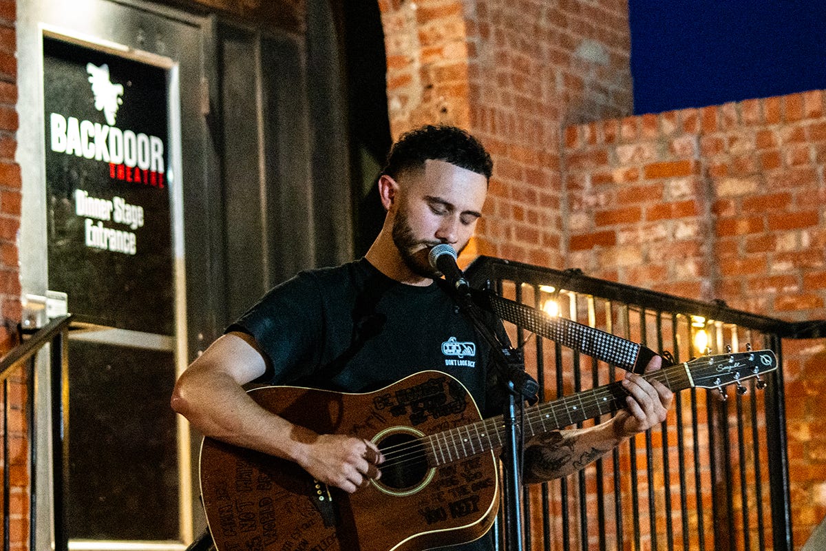 In Spring of 2024 we saw the inaugural “Afterwalk” event at Backdoor Theatre. It’s an indie entertainment show created by Wichita Falls’ singer/songwriter Jay Burnam. The show, which takes place every month right after Artwalk, has traveled around with each event, sometimes happening at 6th Street Winery.