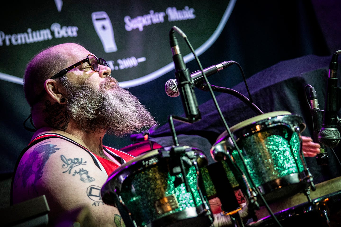 In the absence of a full drum kit, percussionist Keith Gaurkee compliments THR33’s jug band tone and aesthetic. Keith mentioned at one point during the show that he was selling his house to go live on a boat with his wife and two young children. The expression on his face was, Yeah, I said what I said.