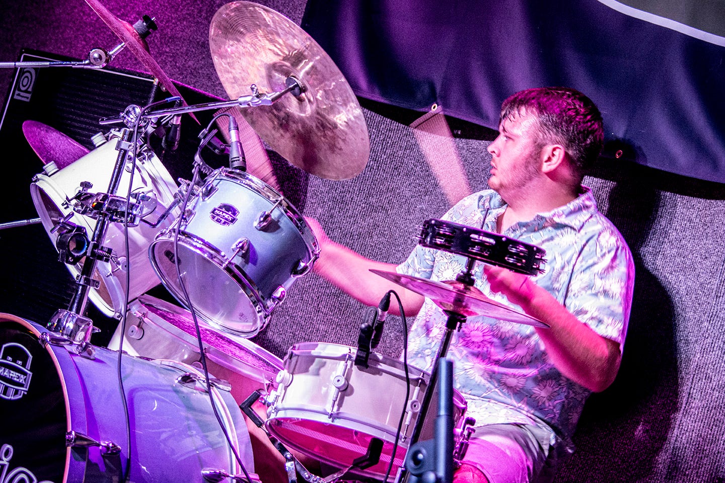 You cannot see Basics in a live setting and not notice the incredible young man on the drum kit. Maycen Miser, at the time of this gig, had not yet entered his second decade of life. That’s right, he’s 19 years old, and the guy drums like he’s been doing it since the day he arrived.