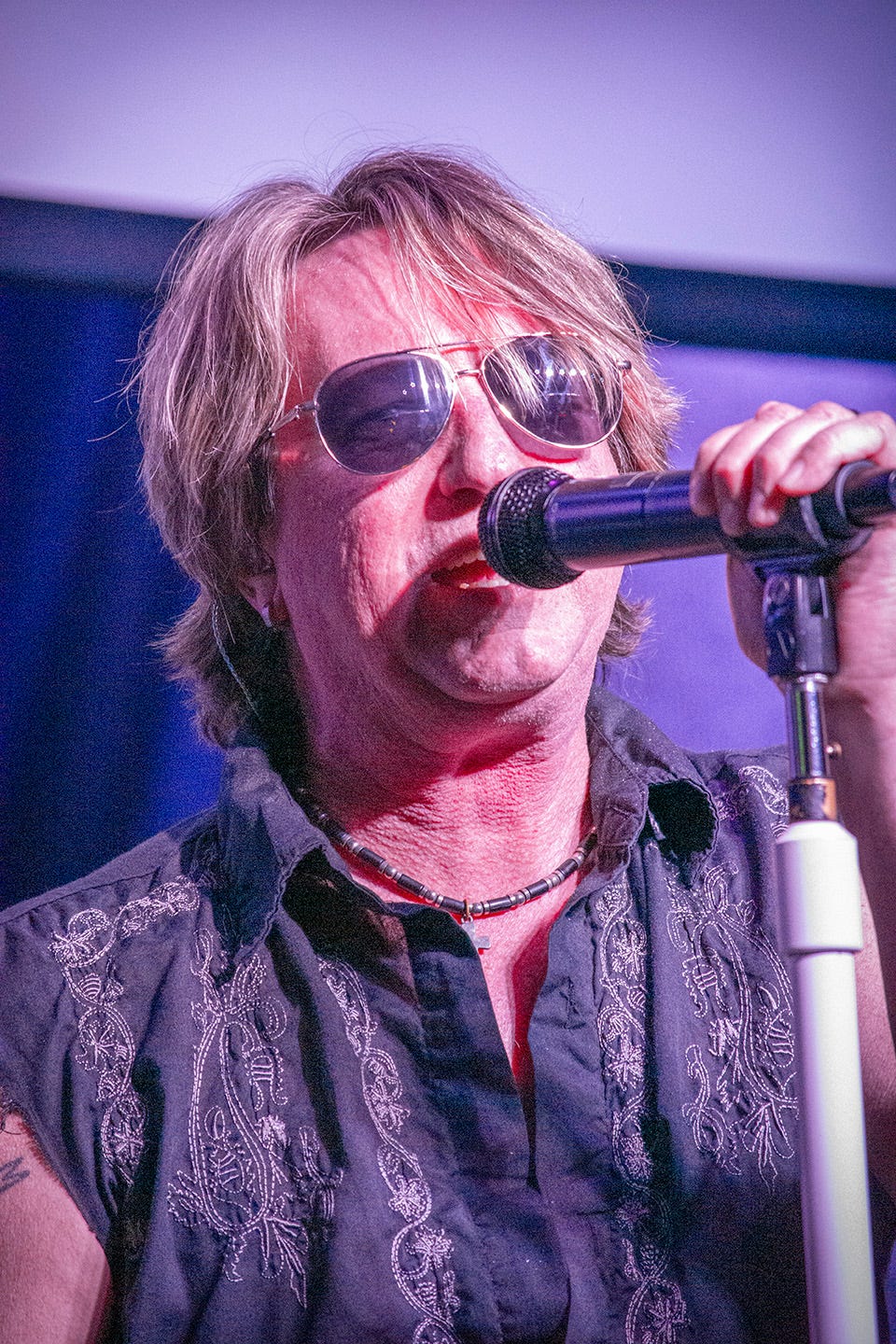 The members of Blaze of Glory actually call each other by the names of the musicians they’re emulating onstage. Lead vocalist Trae Doss, in the role of Jon Bon Jovi, spoke to guitarist Roy Lee (Richie Sambora) between songs, and actually addressed him as “Richie.” I hadn’t seen that before.