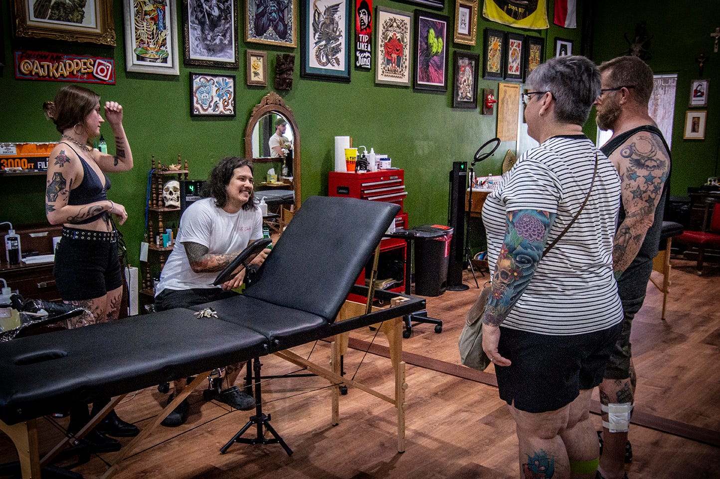Artist AJ Kappes has opened his shop, Burial Tattoo, at 724 Indiana, right next to Maniac’s Mansion, in the former home of the 724 Club.