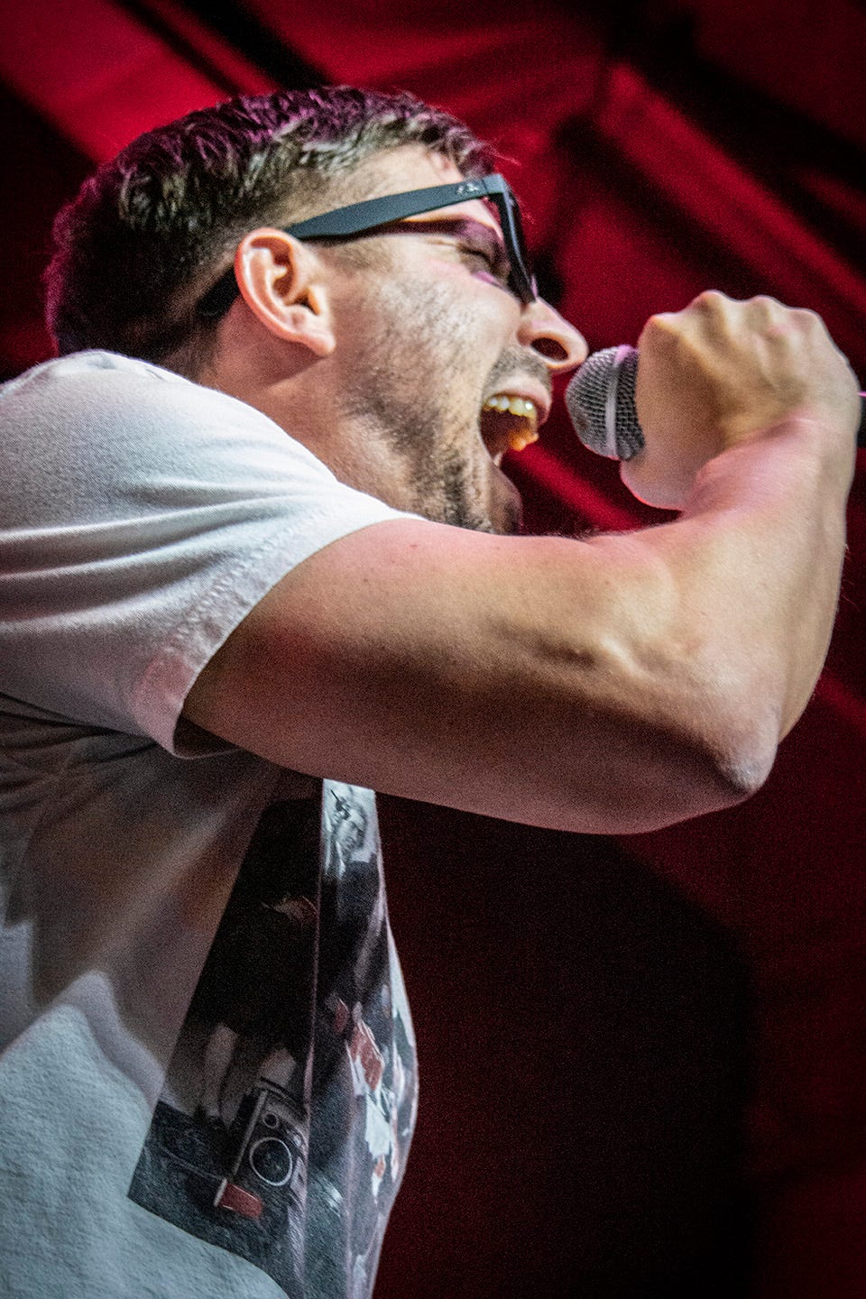 Not only does Jaymes look the part, he wails. At one point during the show, I heard someone soloing and expected to turn around and see Michael going to town. Instead, Jaymes was up there with his fingers blazing way up the neck, high notes cutting through the mix like a buzzsaw. I didn’t look away until the song was over and I was impressed.