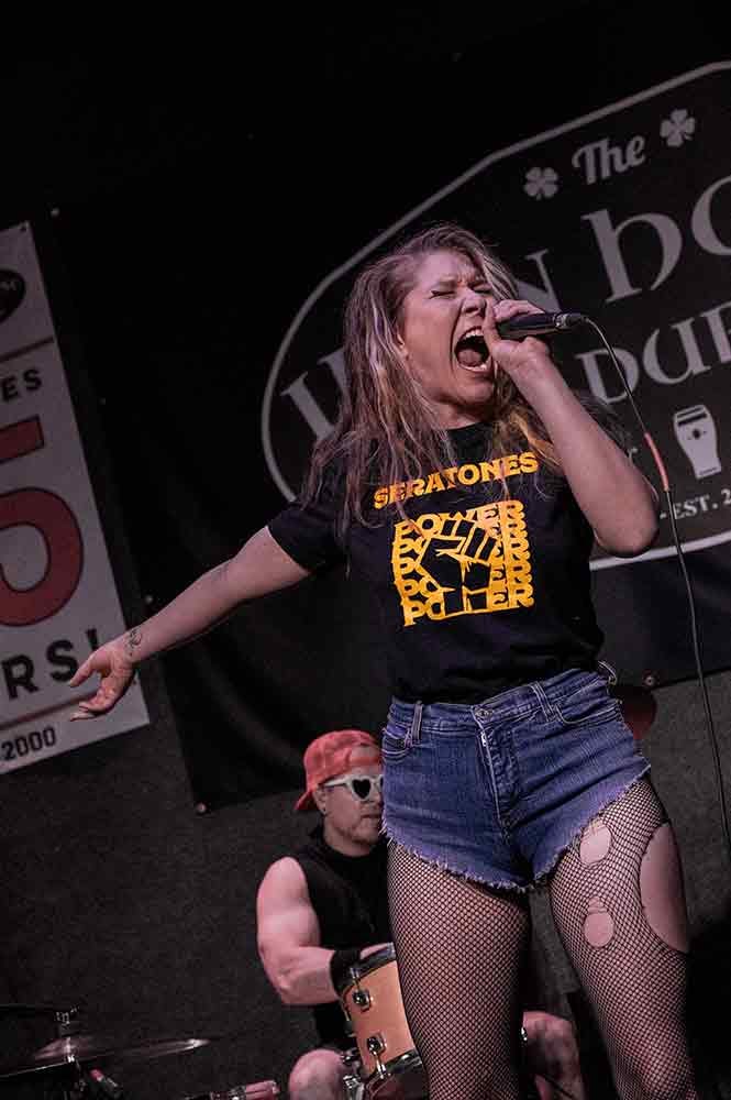 Hen and the Cocks is an outstanding, vibrant, frenetic punk band led by vocalist and frontwoman Jo Henkel. From the very opening notes, she was all over the stage, prancing and preening and making life easy for any photographer in attendance.