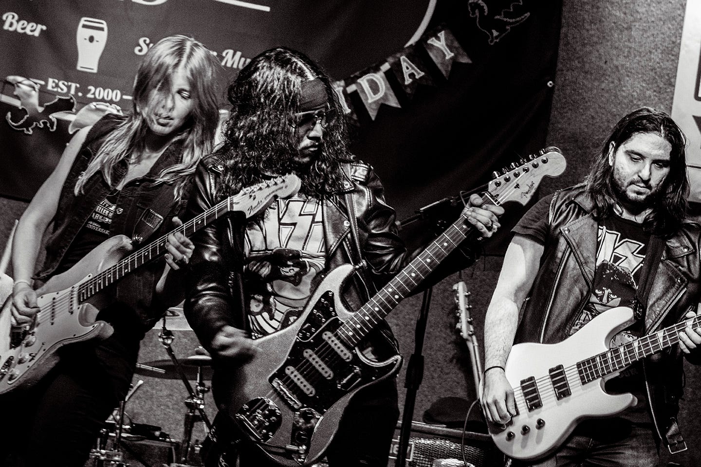 Frontman Kevin Sauceda led the crowd through singalong choruses of familiar rock cover songs, like Def Leppard’s Rock of Ages, Rebel Yell by Billy Idol, and KISS’ Detroit Rock City, but it’s Ratchet Dolls original music that really stole the show.