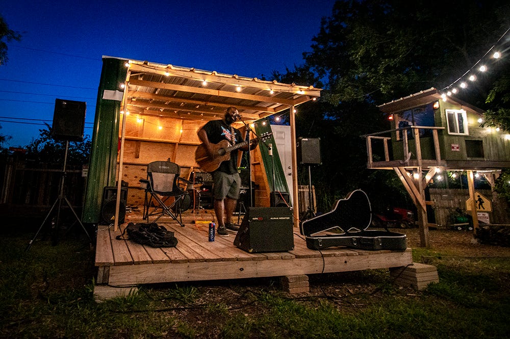 Birdman’s Nest is a venue created by Jay Birdman and Downtown Royalty bassist Files Little, and as you might suspect, yes, it is a back yard venue. Files told us they think they might be willing to host as many as 96 people at a time.
