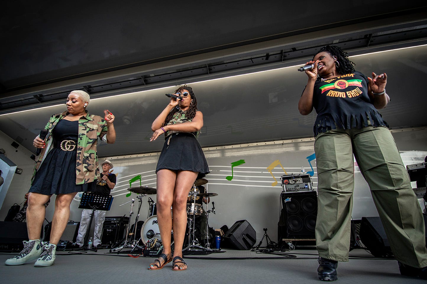 Micki Sweet, Monica Jones and Candi Bleu, AFR’s three ladies in front, captivated the crowd of several hundred from the first note with their renditions of everything from 1960s dance numbers to present day R&B. In fact, they did such a good job, some of us didn’t even notice the absence of AFR’s male singer, Eric Jordan, who missed the show due to a scheduling mixup.