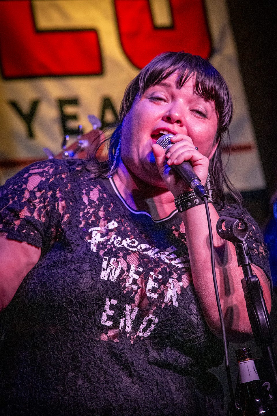 As usual, I posted a few of these photos on my Facebook page as a teaser and keyboardist Melissa Oden Williams’ sister chimed-in to characterize Lelani and her sister as “The First Ladies of Rock in Wichita County,” and I thought that was a particularly apt description. The Escape Goats show is entertaining and fun, sometimes approaching variety act levels of showmanship with Williams and Lei meeting center-stage to entangle their two part harmonies.