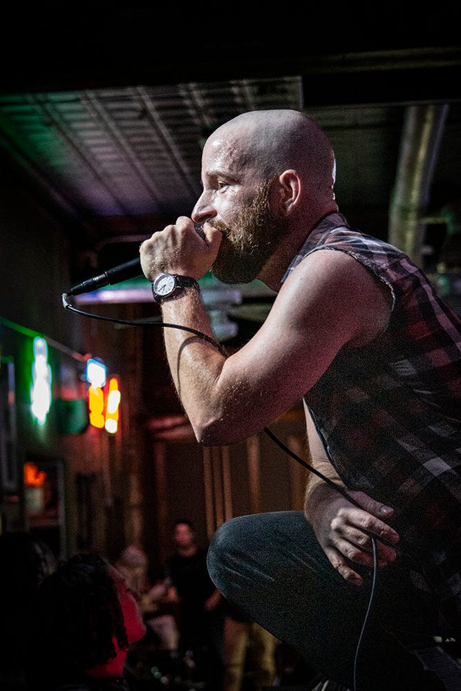 New Realm’s most recent show at The Iron Horse Pub was in support of fellow rock paragon Man the Machine, and from the beginning notes it was clear New Realm was there to set the bar high. Vocalist Brandt Holmes wasted no time leaping atop his monitor while he belted full-throated lyrics with his typical melodic and gritty voice.